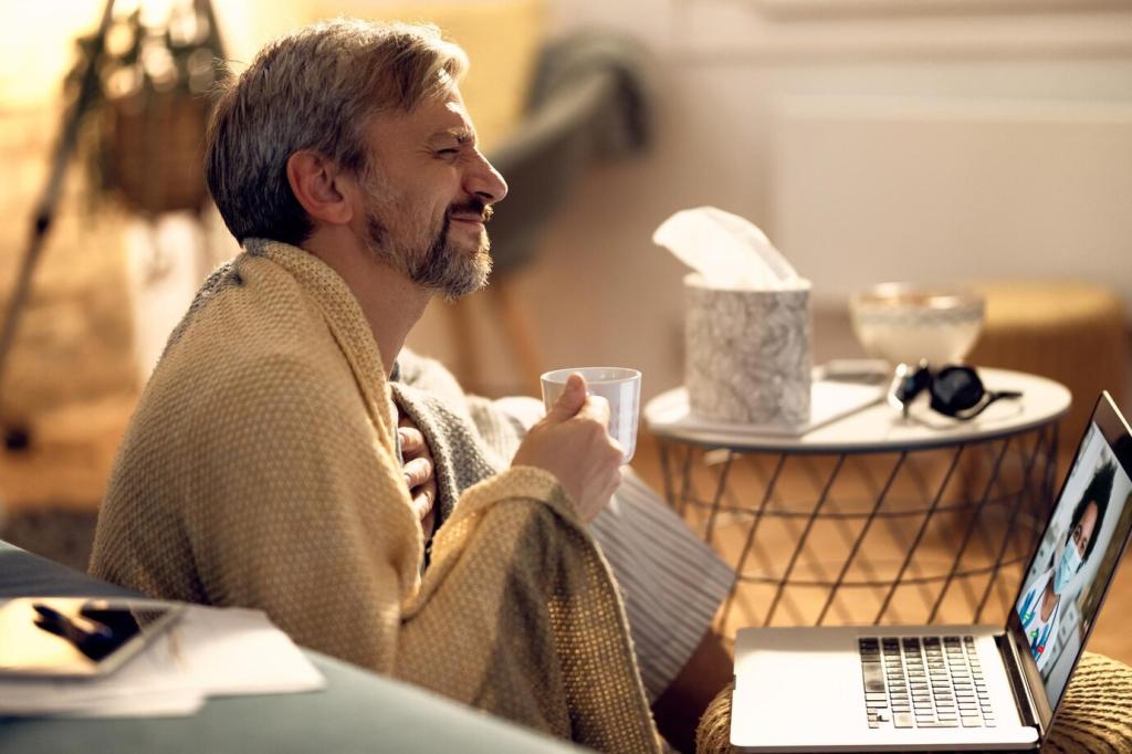 Videokonferenzen sind wertvoll, aber teuer in Aufmerksamkeit. Nutzt sie für Empathie, heikle Themen und schnelle Klärungen. Schalte Kamera gezielt ein, teile Agenda vorher, protokolliere Entscheidungen. Welche Meeting-Rituale helfen dir? Teile deine Tipps.