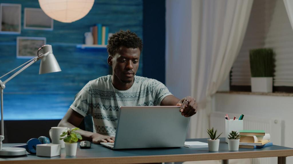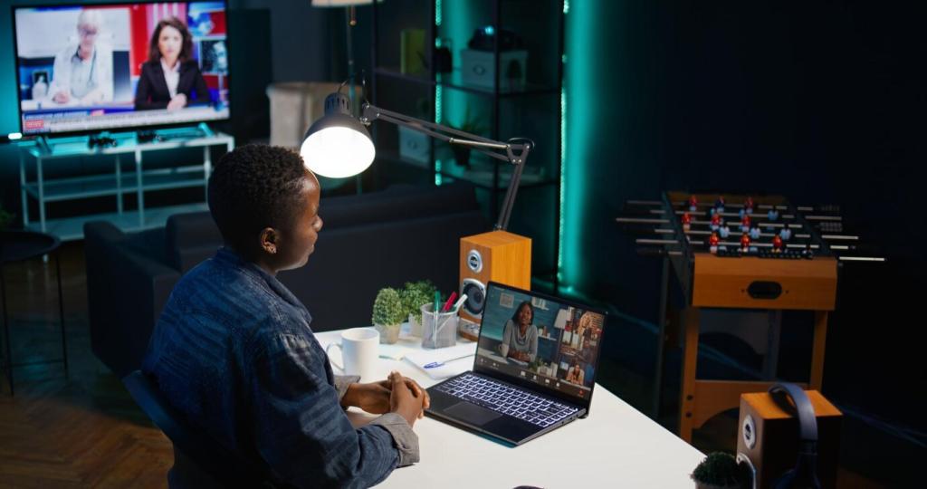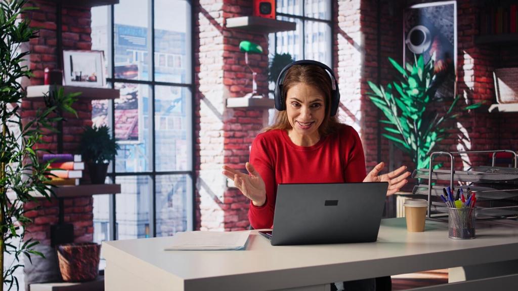 Achten Sie auf eine 90-90-90-Sitzhaltung, die Oberkante des Monitors auf Augenhöhe und etwa 50–70 Zentimeter Sehentfernung. Ein verstellbarer Stuhl, eine stabile Tischhöhe und ein Monitorarm verbessern Haltung, Atmung und Ausdauer spürbar über den gesamten Arbeitstag.